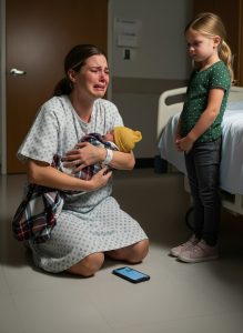 My 10-year-old stared at the newborn and softly said, “Mom… we can’t bring this baby home.” Confused, I asked her why. Her hands trembled as she handed me her phone. “You need to see this,” she said. The second I looked at the screen, my knees almost gave way.